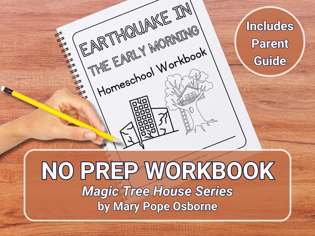 Homeschool Workbook Novel Study | Magic Tree House - Earthquake in the Early Morning | No-Prep Student Workbook